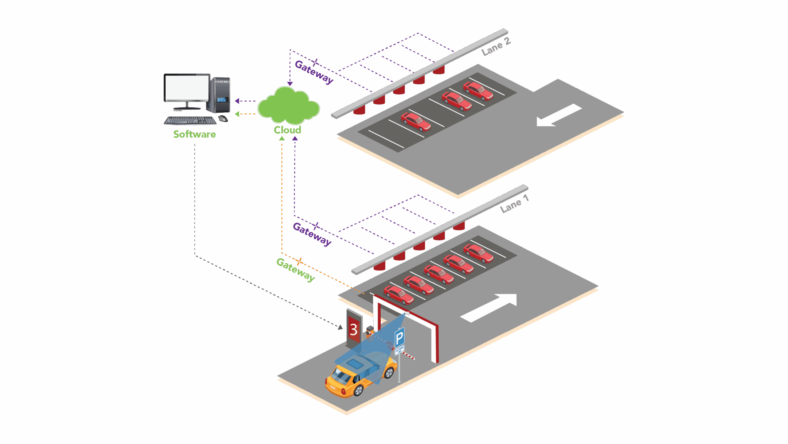 The entrance and exit management solution integrates a license plate recognition system for precise identification and recording of vehicle information, an intelligent barrier system to efficiently control and regulate vehicle access, and radar sensors for accurate detection and control. This comprehensive solution guarantees enhanced security, reduced dependency on human intervention, and optimized traffic flow. speed, and efficiency.