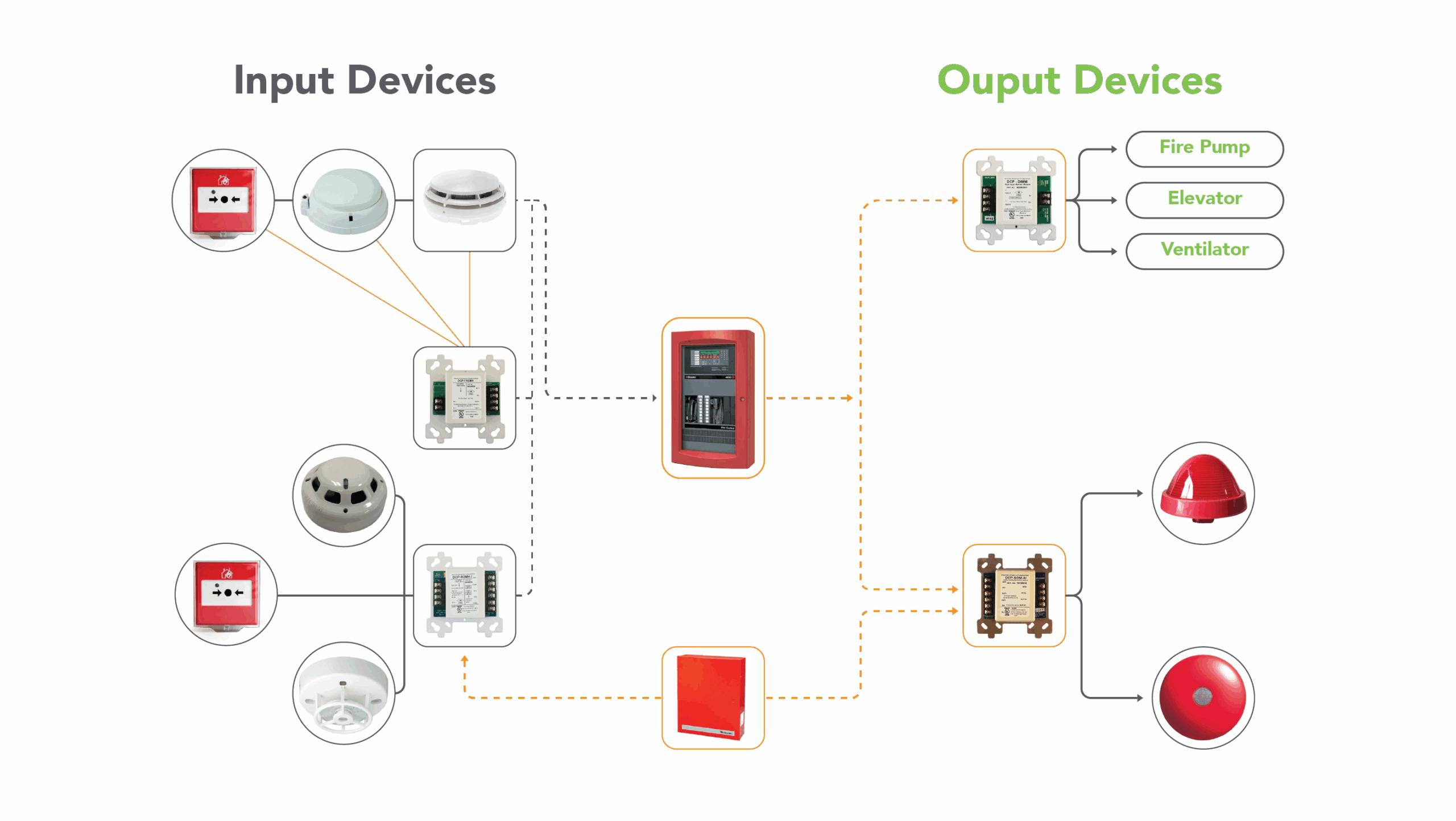 A fire alarm system is a network of devices that detects and alerts people of a potential fire, smoke, or carbon monoxide in a building. Fire alarms are required in most commercial buildings. Fire alarm systems use a combination of visual and audible signals to warn people. These signals can include: A loud siren or bell, A flashing light, A voice message, and A phone call.